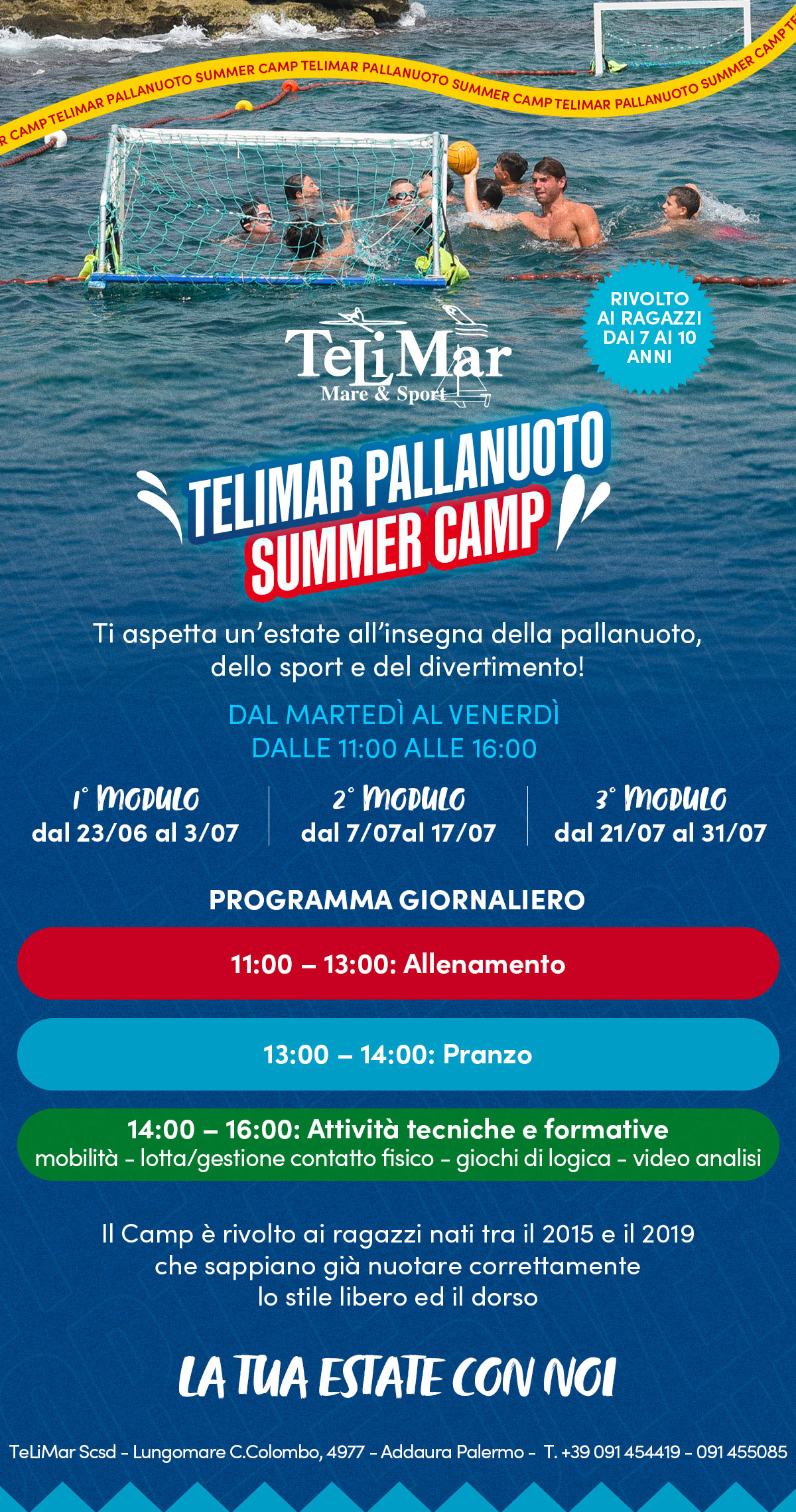 Fate respirare ai vostri figli la stupenda disciplina della pallanuoto in un contesto all'aria aperta come quello del TeLiMar.